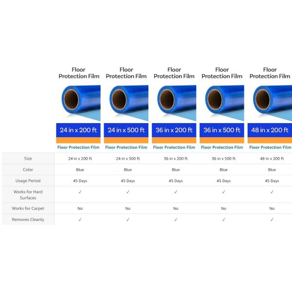 Our Floor Protection Film is an American-made polyethylene film with a clean removal adhesive. disposable-consumables.com The entire protective film is sticky, so you can attach it to the entire surface of the floor, saving you from the hassle of wrinkles, bubbles, and unattached film. Floor protection film products that aren't tacky enough may come off before you intended, which can create tripping hazards and expose your floor to damage. disposable-consumables.com Even though it is sticky enough to cling to your floor